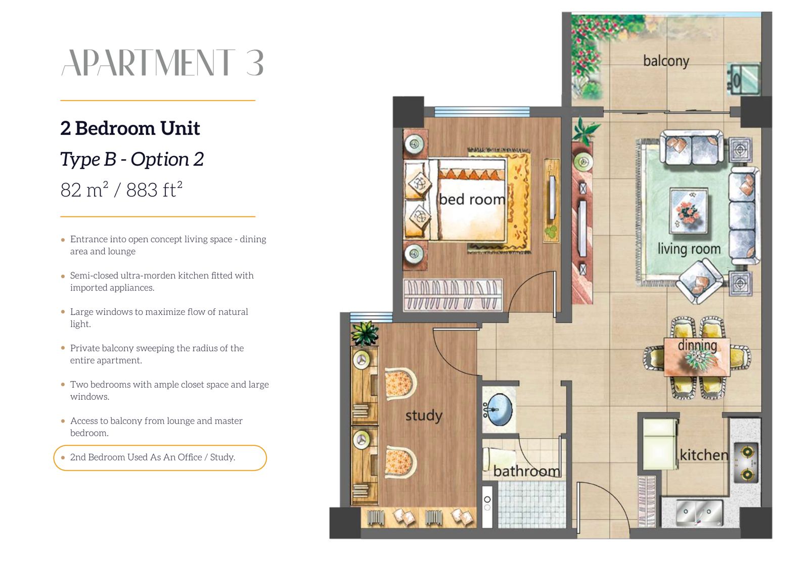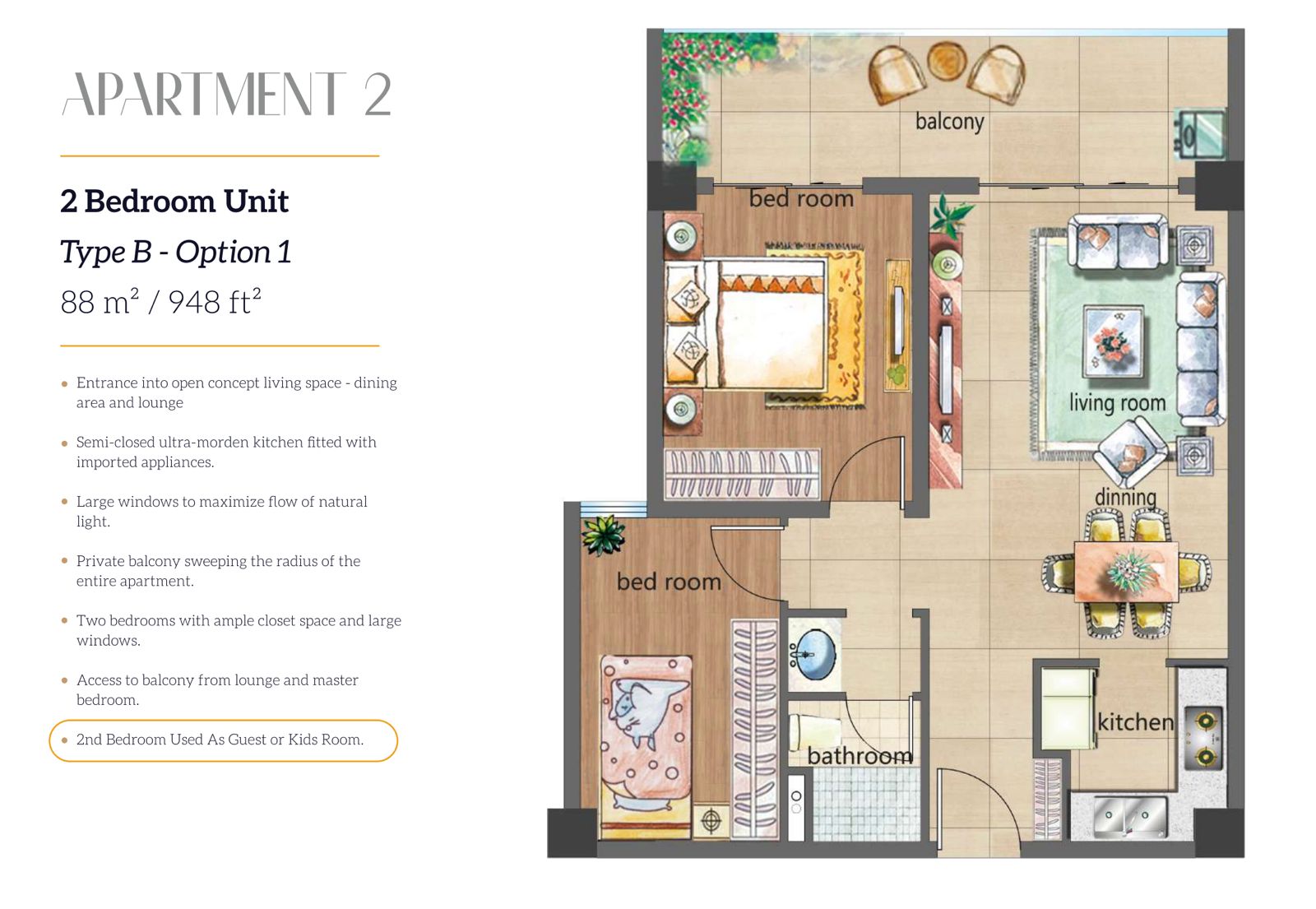 - 2 Bedrooms